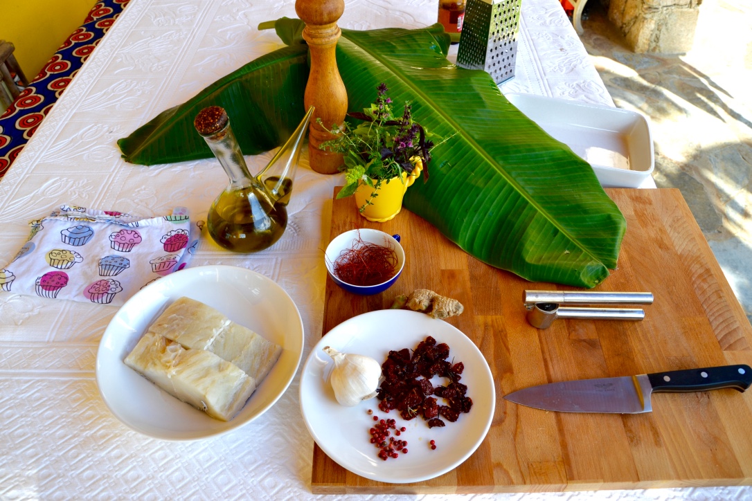 Preparing fish in banana leaf